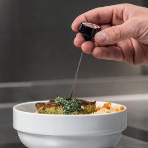 Giá trị đo chính xác hiển thị trên màn hình kỹ thuật số của nhiệt kế đo độ đâm xuyên; (không giống như nhiệt kế thực phẩm analog trước đây, hạn chế 100% nguy cơ đọc sai). Màn hình cũng có chỉ báo trạng thái pin và tùy chọn hiển thị nhiệt độ theo °C hoặc °F. Ống bảo vệ được cung cấp cho đầu dò và một đai đeo thiết bị vào túi một cách an toàn. Điều này thuận tiện cho phép bạn mang nhiệt kế thâm nhập đến bất kỳ vị trí đo nào.